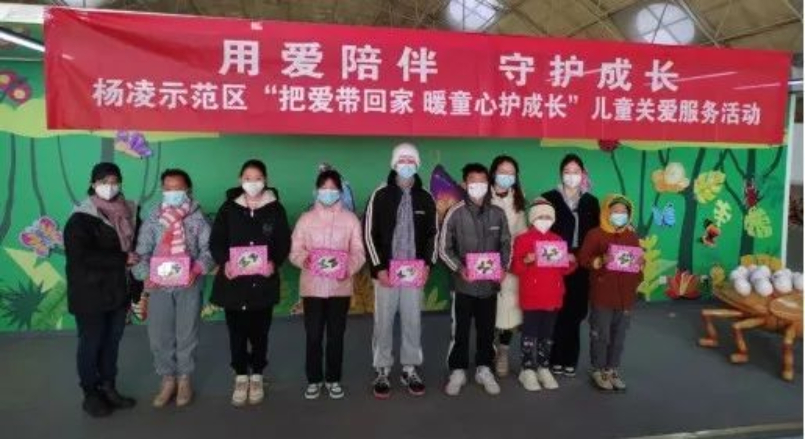 1月17日上午,由杨凌示范区妇女联合会和西北农林科技大学博览园举办的“用爱陪伴 守护成长”关爱儿童活动在博览园昆虫馆举行,本次活动主题为“把爱带回家 暖童心护成长”,示范区妇联主席张欣,杨陵区妇联副主席孙莹,博览园副主任魏永平,来自杨凌的五泉镇、揉谷镇七个村的妇联主席及杨凌示范区三八红旗手、巾帼志愿者、爱心企业、爱心人士代表40余人和博览园员工参加了本次活动,为极端贫困家庭的7位孩子们送去了温暖。
