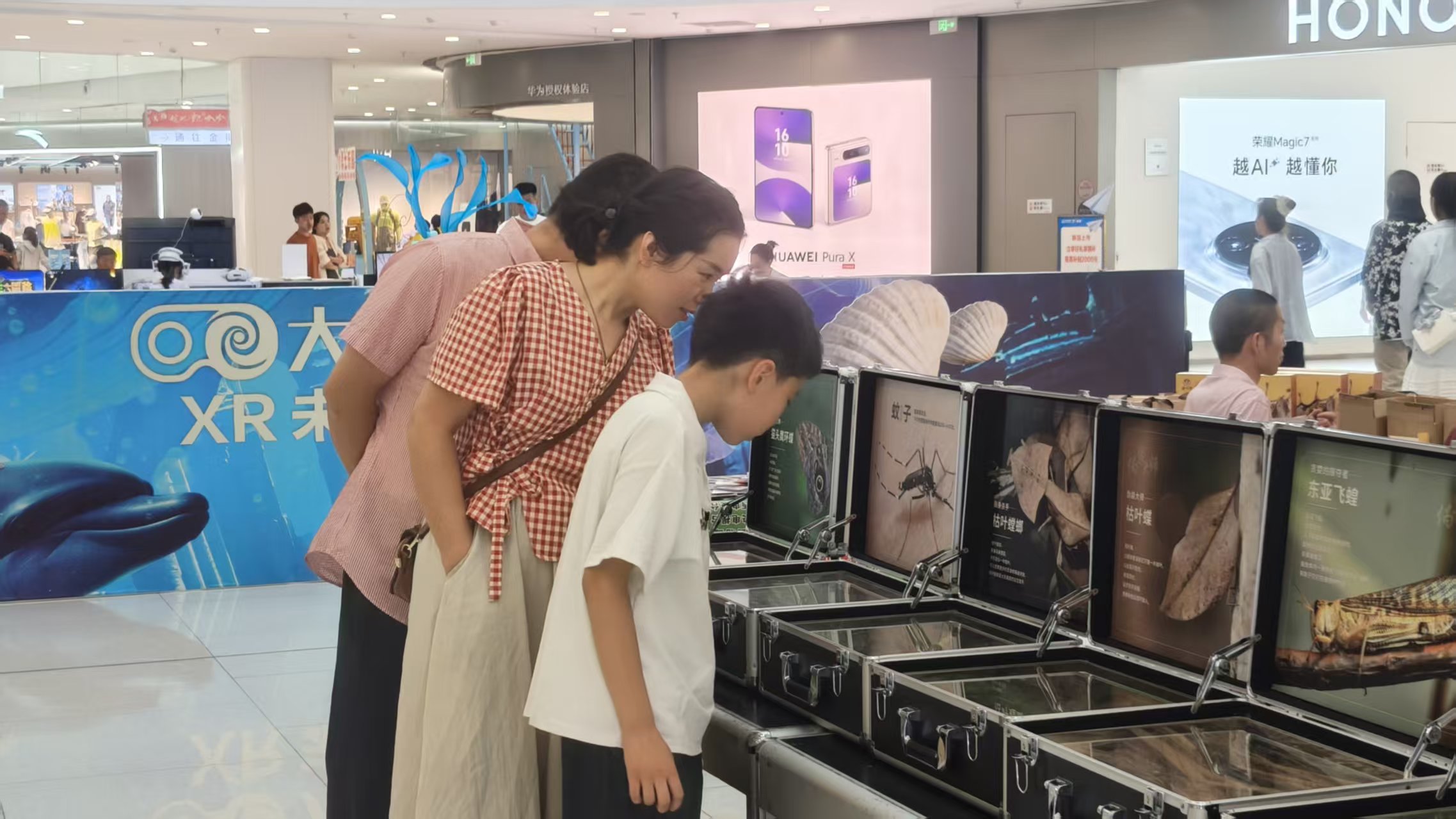 昆虫是自然界的重要成员,也是农业生产中不可忽视的角色。在教学挂图展示的同时还展出了博览园研发的“移动昆虫馆”,带观众走进奇妙的昆虫世界。展览聚焦小麦害虫,如麦蚜、黏虫、小麦吸浆虫等,揭示它们对农作物的危害及其防治意义。通过“伪装大师”和“昆虫歌手”系列科普展箱,以生动直观的方式展示昆虫的生存智慧与生态作用。