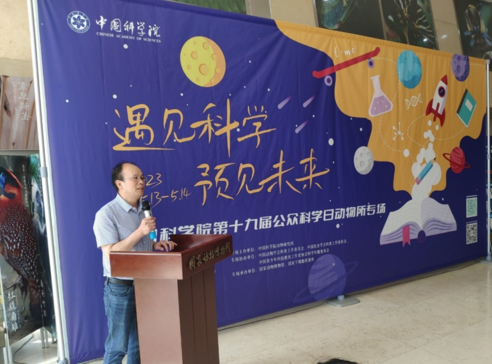 5月13日-14日,为中国科学院第十九届公众科学日,今年的主题为“遇见科学、预见未来”。本次动物所专场活动由中国科学院动物研究所主办,中国动物学会科普委员会、中国昆虫学会科普委员会、中国青少年科技教育工作者协会科学传播委员会协办,国家动物博物馆、国家干细胞资源库承办。国家动物博物馆副馆长(主持工作)张劲硕主持开幕式,动物所党总支书记徐海燕出席,我校博览园魏永平副主任应邀参加了专场活动开幕式,代表中国昆虫学会科普委员会致辞。并在开幕式结束后在国家动物博物馆做了首场科普报告。