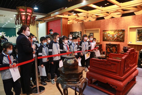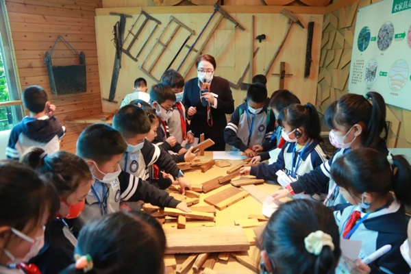 活动依托博览园木材博物馆丰富的馆藏,围绕发现国粹之美 培养工匠精神以“小木匠 大智慧”为主题,旨在传承我国优秀传统文化,科普古代木作技艺。首先,在博览园讲解员的带领下,参观了博览园的木材博物馆。展馆之中,同学们与五百年高龄的古夷苏木对话;了解紫檀木、花梨木等珍贵树木的价值与作用;对尽显中国漆艺之精湛的乾隆剔红宝座、贴金飞天、牡丹小鸟、松鹤延年屏风等近百件清明近现代漆艺作品赞叹不已,瞻仰了木工祖师鲁班发明的锯子,深深地感受到建筑文化的博大精深。