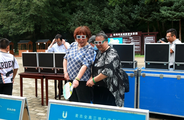 游客观看3D科普展板