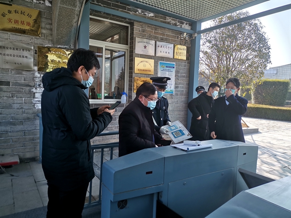 1月14日下午,示范区疫情防控第二督导组组长何淳及文化和旅游体育局副局长聂超一行8人莅临我园检查指导疫情防控工作,园区副主任张振华、办公室主任李有年、保安部负责人王运动陪同检查。
