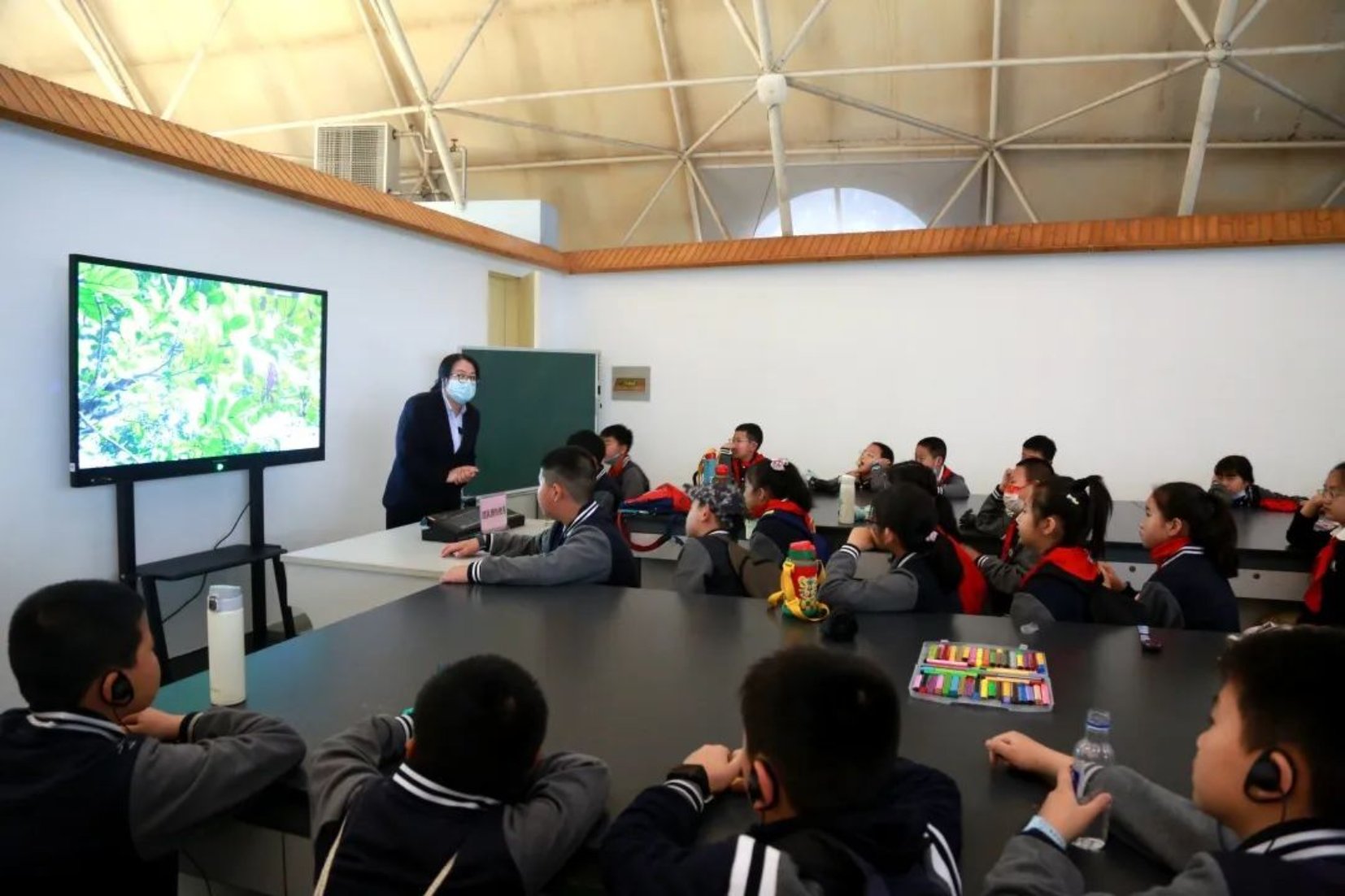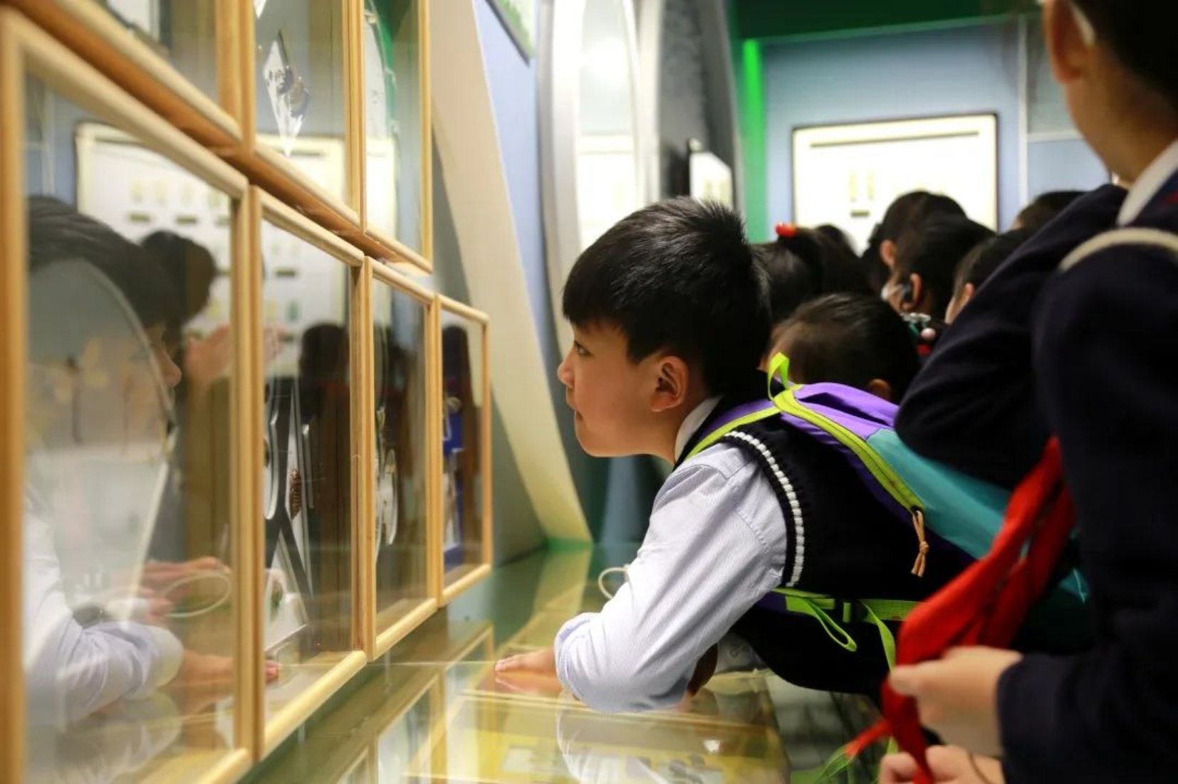 来到昆虫馆,馆内的丰富馆藏着实让同学们见识到了昆虫群体的庞大,也见识到了多样的昆虫智慧。什么是昆虫?昆虫的嘴有什么特点?昆虫界有哪些伪装大师?蝴蝶与蛾子有什么区别?……同学们层出不穷的问题一一被讲解小姐姐解答。