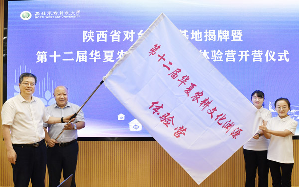 6月27日,“陕西省对台交流基地”揭牌仪式暨第十二届华夏农耕文化渊源体验营开营在我校举行。陕西省委台办、省政府台办副主任陈强,我校罗军副校长为博览园获批设立的“陕西省对台交流基地”揭牌,并为第十二届华夏农耕文化渊源体验营授旗。陕西省台办交流交往处处长袁永明宣读了《关于同意将西北农林科技大学博览园设立为“陕西省对台交流基地”的批复》。中兴大学和西北农林科技大学两校参加农耕文化渊源体验营的老师和营员代表作了交流发言。