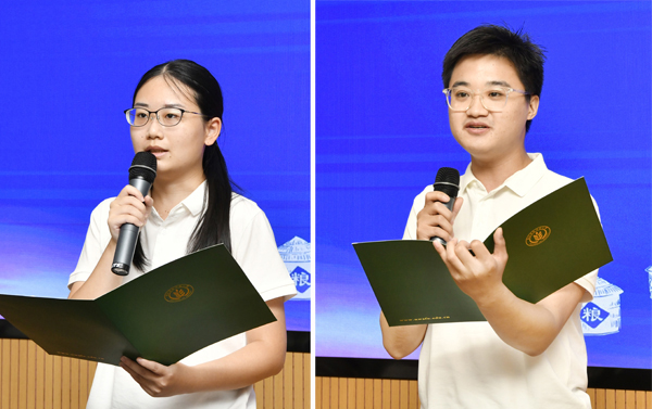 中兴大学学生代表蔡佩珊同学和我校学生代表及祥同学发言
