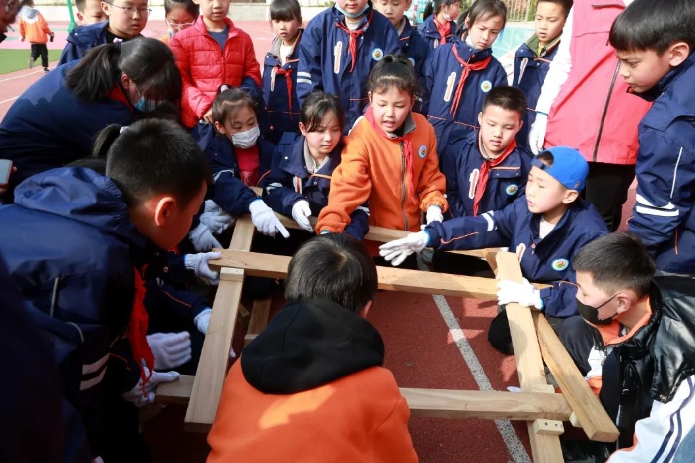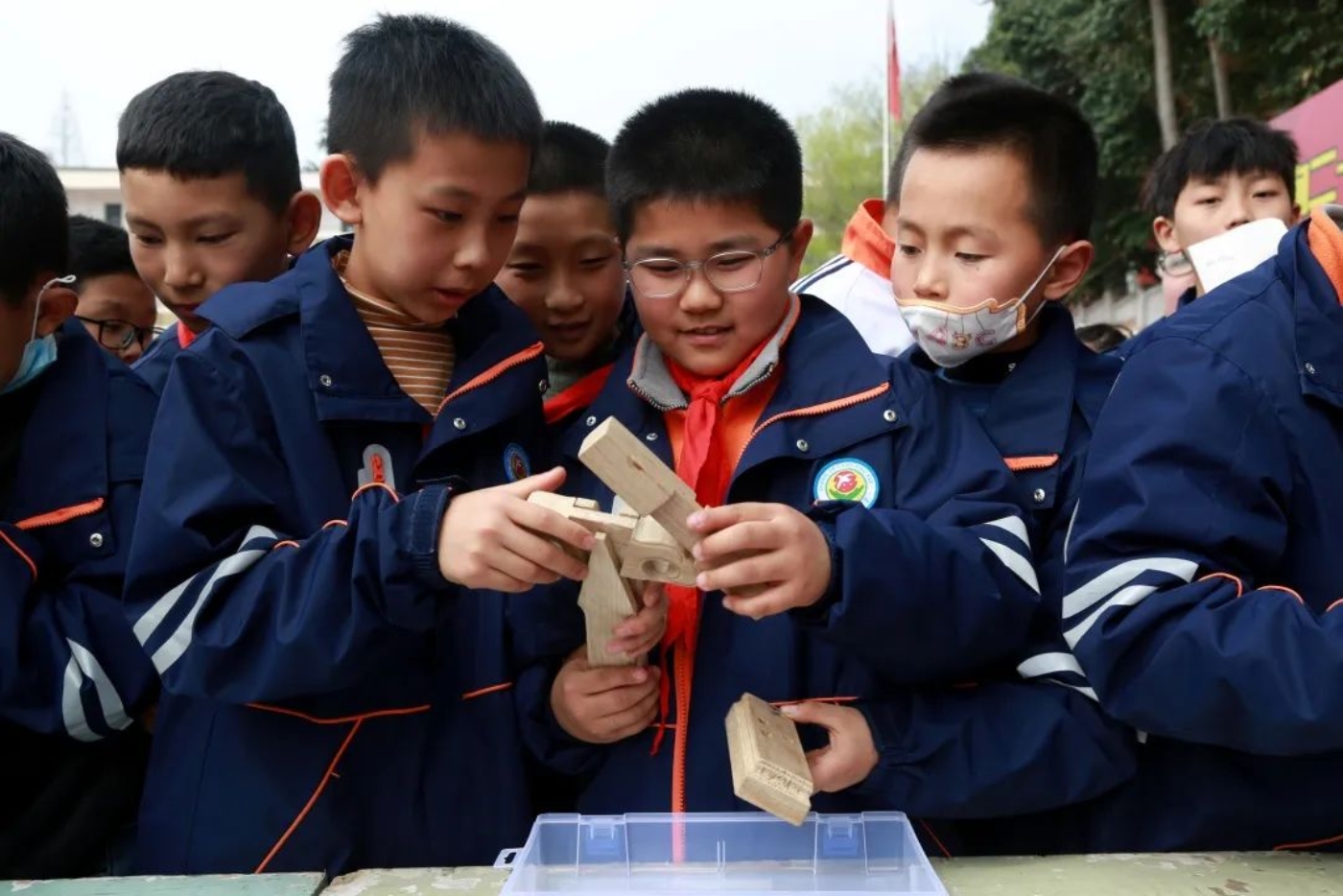 “小木匠 大智慧”。在志愿者的讲解和指导下,同学们不仅动手体验了云型插肩榫、方材丁字结合(直肩榫)等榫卯工艺。还纷纷化身桥梁工程师,出谋划策,自行探索搭建大型倍力桥。在玩中学、学中乐、乐中获,不仅深刻体验到了不用钉,不用胶,就能让成品自然成型且严丝合缝千年技艺智慧。还锻炼了动手实践能力,培养了团队合作精神,激发学生对科学的探索。