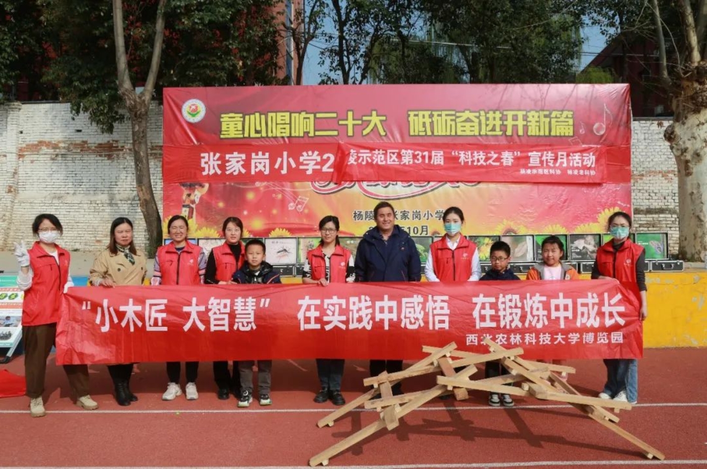 31届“科技之春”宣传活动月之际,为进一步贯彻落实高校社会服务职能,促进科学普及,提升青少年科学文化素养。3月20日下午,西北农林科技大学博览园联合杨凌示范区科学技术协会走进张家岗小学以“小昆虫 大科技”和“小木匠 大智慧”为主题开展系列科普活动,本次活动内容包括中科协昆虫科学传播专家工作室自主研发的“昆虫伪装大师”“昆虫歌手”系列科普展箱,“学做小小植物学家”科普展;榫卯结构互动,大型倍力桥体验。点燃了小学生的科学热情,放飞科学梦想。张家岗小学500余师生参与活动。