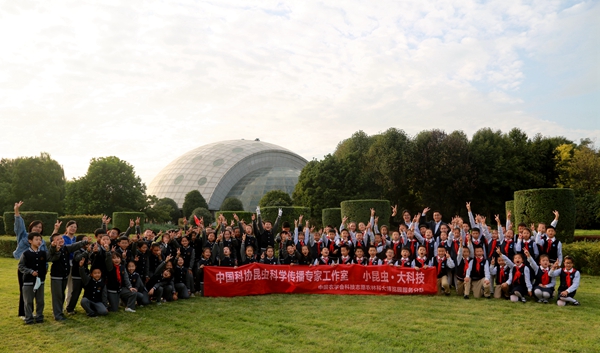 中国农学会科技志愿服务农林科大博览园分队和同学们合影留念