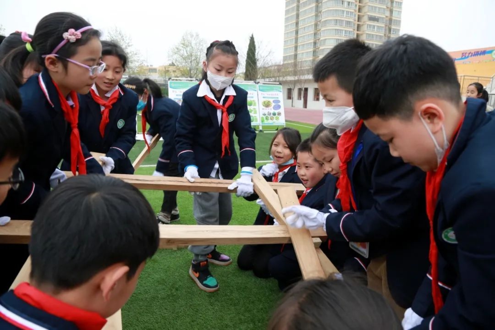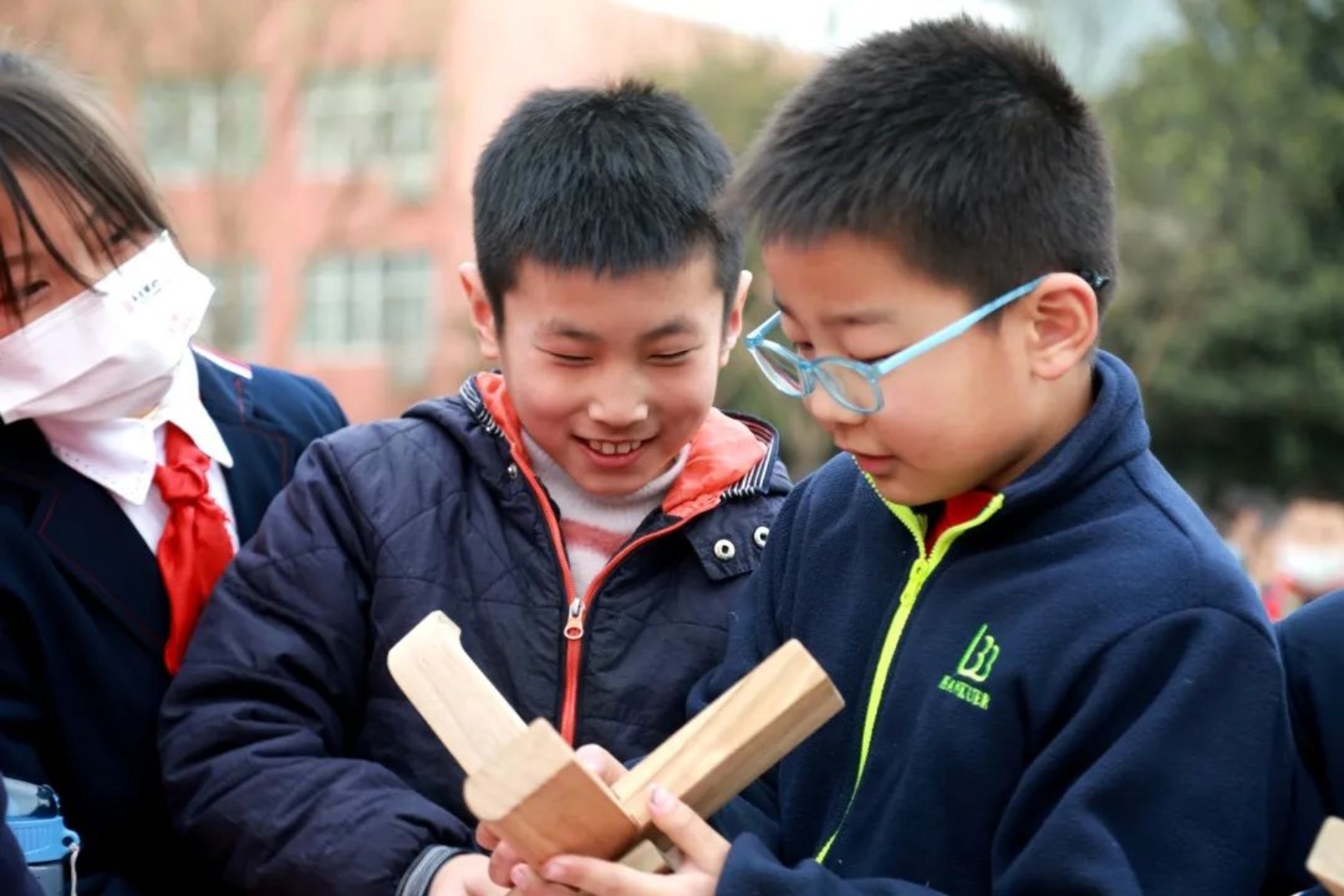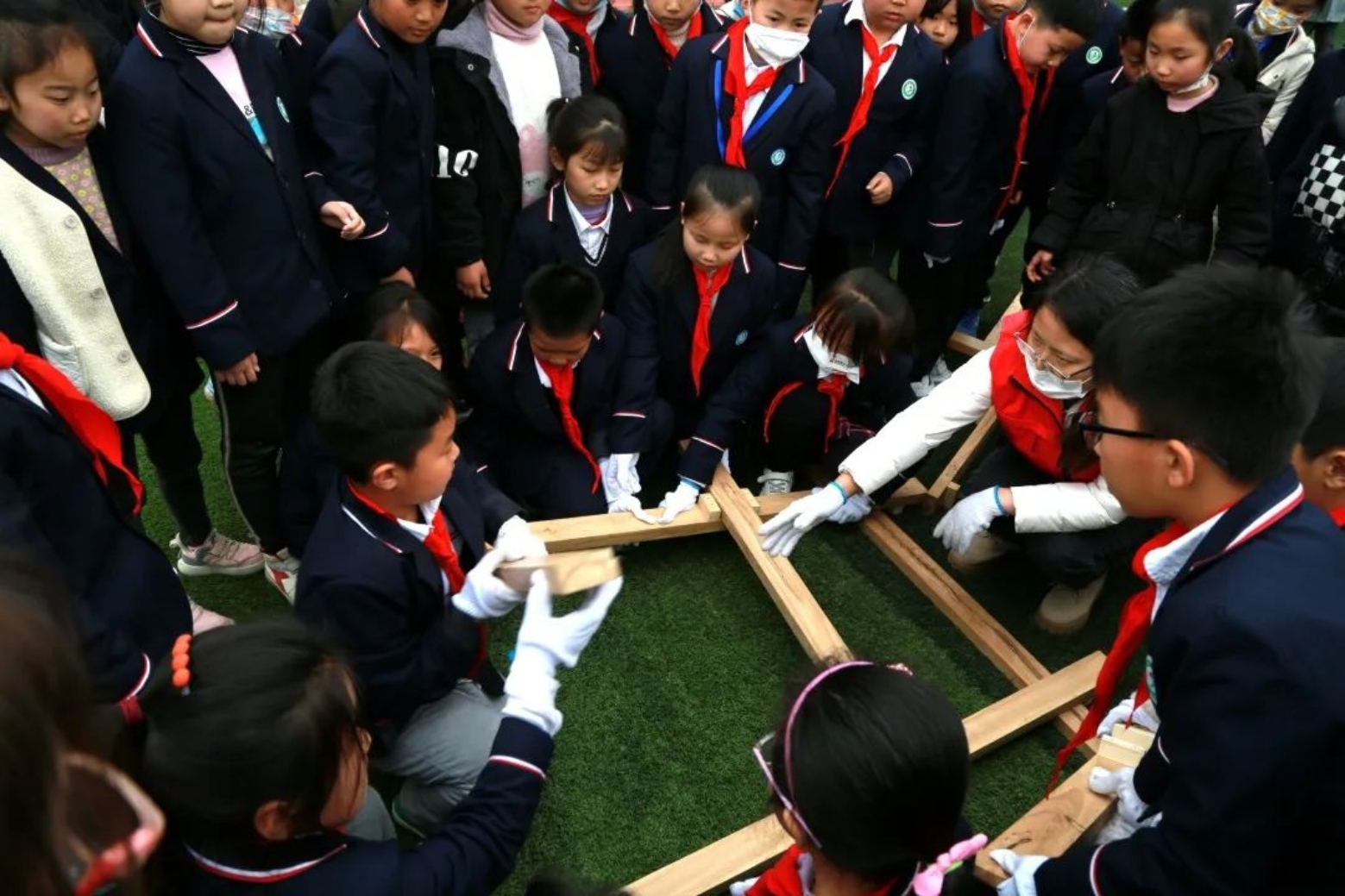 “小木匠 大智慧”,感悟工匠精神。孩子们动手拼接榫卯,搭建倍力桥,对这延续了几千年的技艺智慧叹为观止。