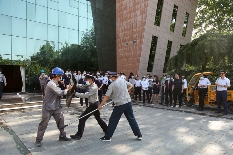 园区职工分组进行防暴对抗演练