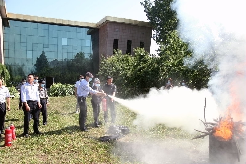 王华教授演练使用灭火器灭火