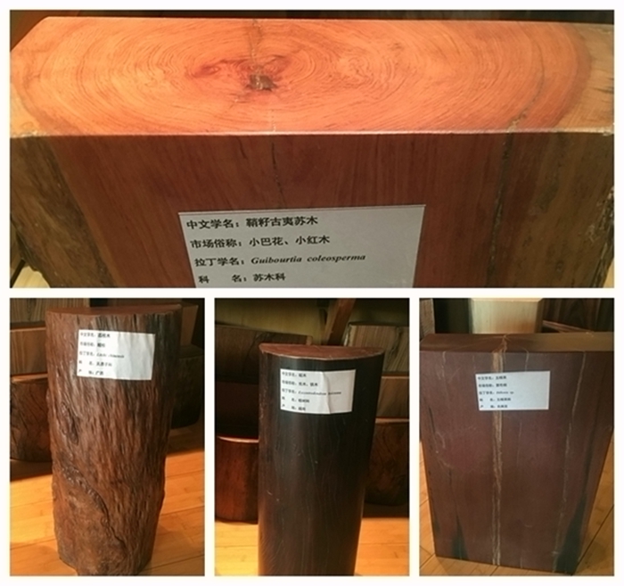 精美的木材三切面标本展示(由左至右分别是红豆杉、香樟、卢氏黑黄檀)