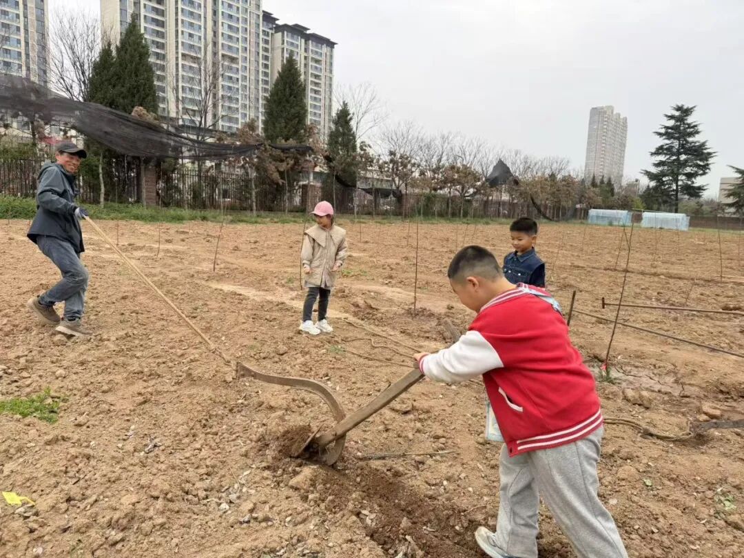 作为课程的重头戏,“农耕体验 —— 跟着节气忙农事” 模块深度还原传统春耕工序,孩子们亲身感受农耕的乐趣与艰辛。老师结合《齐民要术》记载,讲解耕、耙、耱在农业生产中的作用与科学原理,并解读耱地保墒的重要性。随后,孩子们将分组开展春耕模拟赛,依次体验人拉犁翻土、钉齿耙碎土、耱具摩平保墒的全过程,在实践中对比三道工序的不同感受,理解精耕细作的传统农耕智慧。