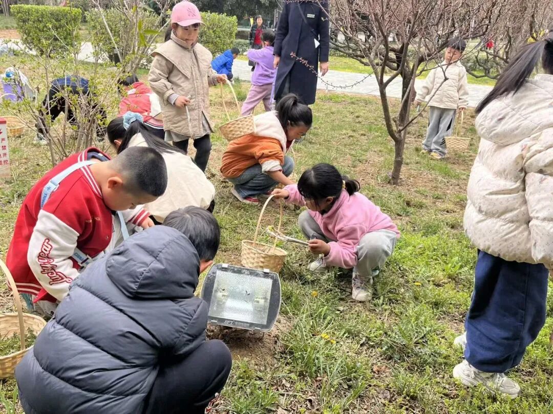 随后,孩子们走进自然,近距离认识荠菜、蒲公英、野葱三种常见春季野菜。科普老师细致讲解每种野菜的核心辨识特征,引导孩子们通过 “看、摸、闻” 多感官记忆,比如荠菜趴地生长的羽状深裂叶片、蒲公英折断后流出的白色乳汁、野葱的独特香气等。在户外采摘实践后,老师带领孩子们进行分类整理、清理打包,并为家长提供专业的烹饪建议,让孩子们将春日 “收获” 带回家。